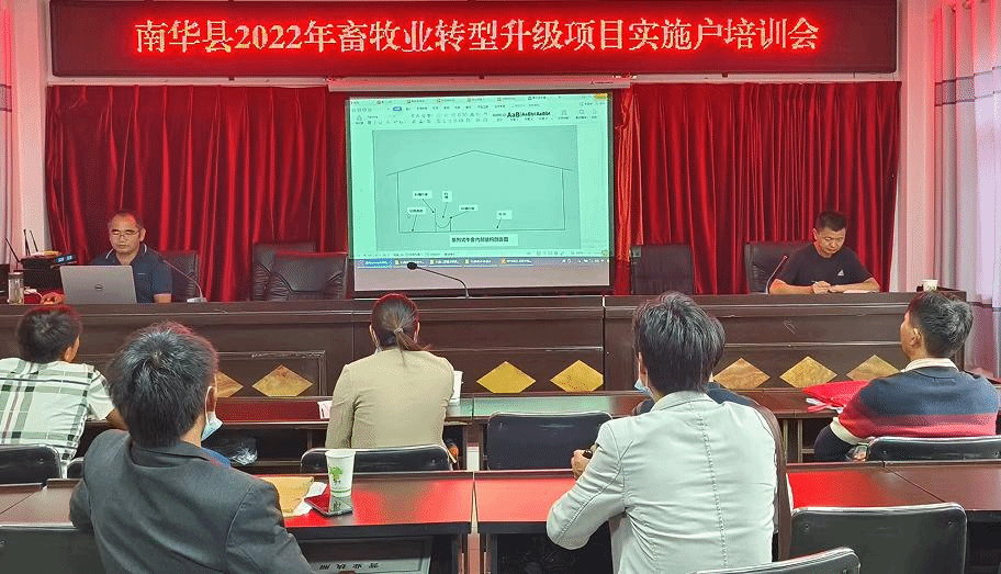 2022年9月1日,南华县农业农村局举办2022年畜牧业转型升级项目实施户培训会。县农业农村局分管领导,畜牧兽医水产股、县动物疫病预防控制中心、县动物卫生监督所负责人及技术人员,2022年畜牧业转型升级项目8户实施户负责人共15人参加培训会。培训会分二段进行,上午举行培训会,下午组织现场观摩。