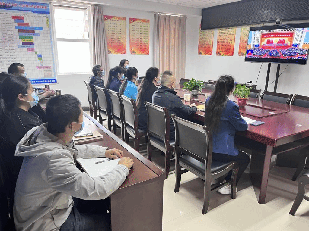 10月16日上午10时,南华县统计局干部职工14人集中通过电视机共同收看党的二十大开幕会实况直播。