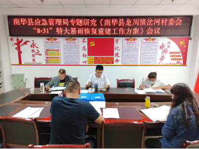 9月14日上午,县委、县政府召开了《南华县应对龙川镇岔河村“8.31”暴雨山洪灾害复盘工作》会议,会后,南华县应急管理局组织召开《南华县龙川镇岔河村委会“8.31”特大暴雨恢复重建工作方案》专题研究会议,就龙川镇岔河村委会灾后重建工作、应急预案组织架构、如何增强预案的实操性和系统性等问题进行了安排部署。