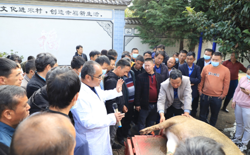 开班仪式上县农业农村局党委书记、局长彭建林同志作动员讲话,就我县畜牧业发展的概况、存在的问题短板以及前景规划对培训班学员提出了三个方面的要求:一是全体学员要凝神聚气,增强学习紧迫感和责任感,在培训期间把自己的短板补齐、盲点学懂弄通,使技术水平有效提升;二是要突出重点、学以致用,乡村兽医要自觉加强对现代实用养殖技术和临床经验的学习和掌握,确保今后工作技术保障到位;三是要扛起工作责任,发挥主人翁意识,做到内强素质,外树形象,切实承担起自身所肩负的工作职责和使命,带头发展畜牧业。