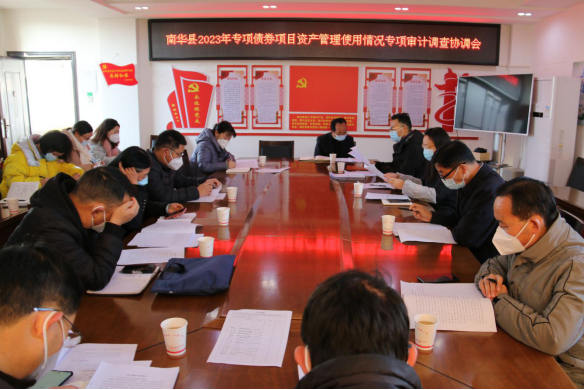为认真做好2023年专项债券项目资产管理使用情况专项审计调查工作,近日,南华县审计局组织召开南华县2023年专项债券项目资产管理使用情况专项审计调查协调会,审计组全体成员、县发展改革局、县财政局等9家单位分管领导和相关业务人员参加会议。