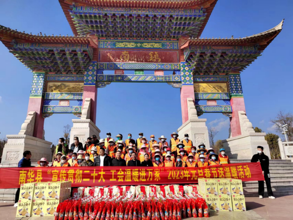 为了表达对环卫工人辛苦付出的感谢,切实把关心关爱送到环卫工人心坎上。在新春佳节到来之际,1月17日下午,县总工会常务副主席李世明、副主席郭金兰一行带着党和政府的关怀和温暖,对南华县环卫工人开展2023年春节慰问活动,向一线环卫工人们送上温暖与祝福。