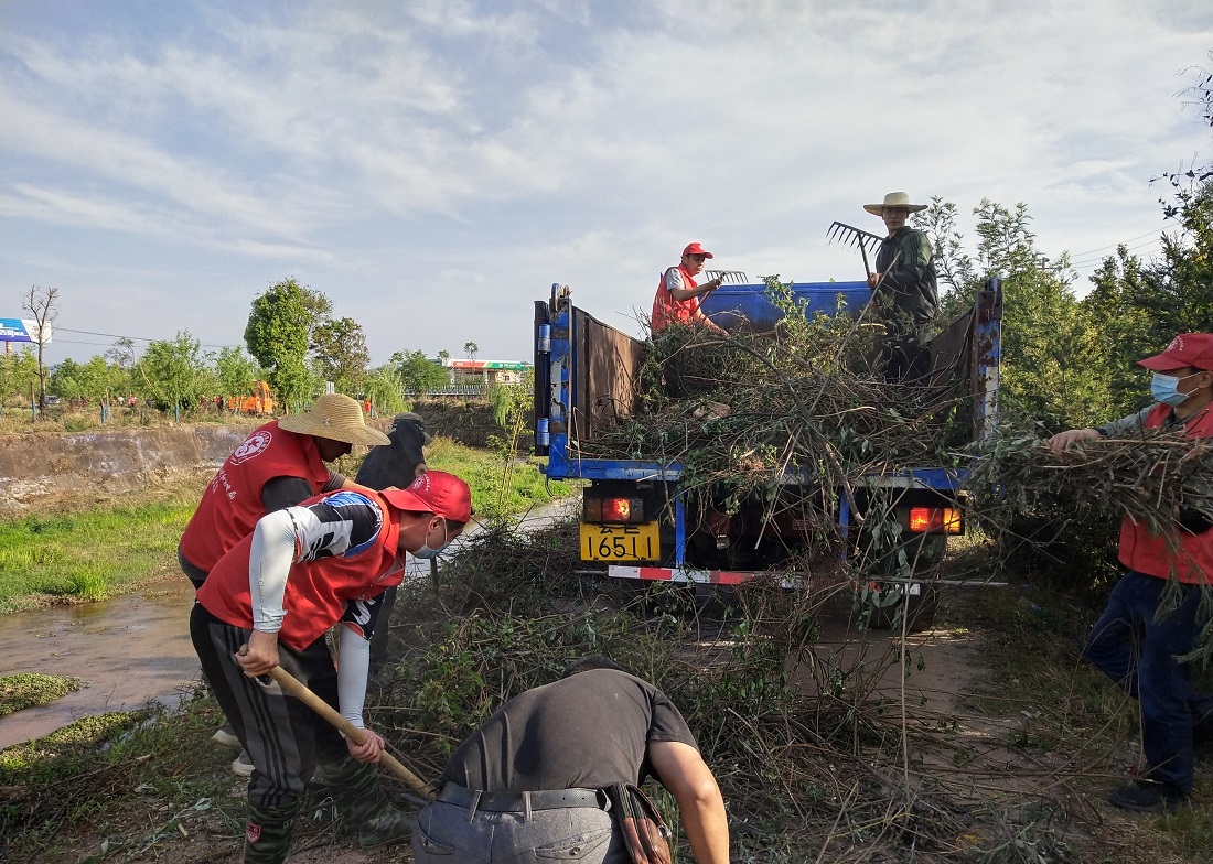 在活动现场,党员干部们头顶烈日,身着志愿服,手拿锄头、铁锹、砍刀、靶子等工具,不怕苦、不怕脏、不怕累,心往一处想、劲往一处使,齐心协力对河道内垃圾、枯枝烂叶、破旧弃品等进行打捞,对河道两岸堤防杂草、杂树木、垃圾等进行清除清运,在炎炎烈日下干得热火朝天,胸前鲜红的党员徽章在阳光的照射下熠熠生辉,穿梭忙碌的身影在龙川江沿岸形成一道靓丽风景。