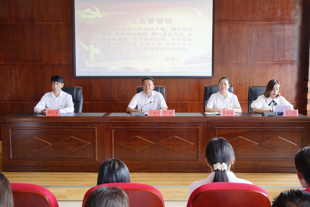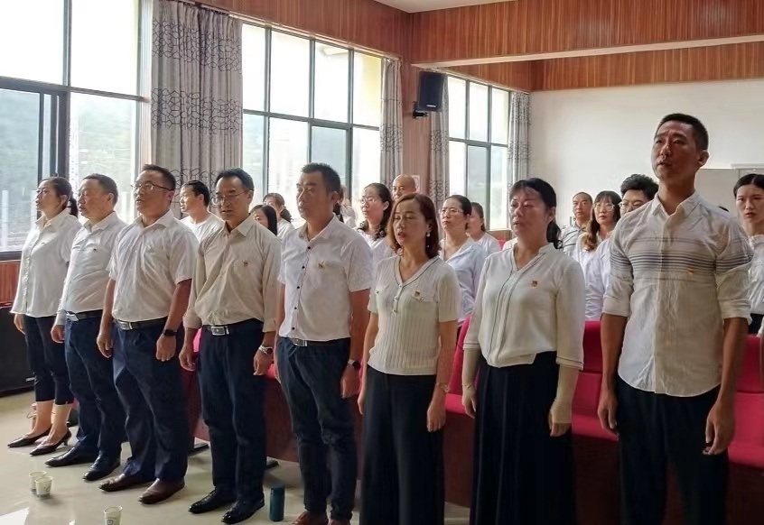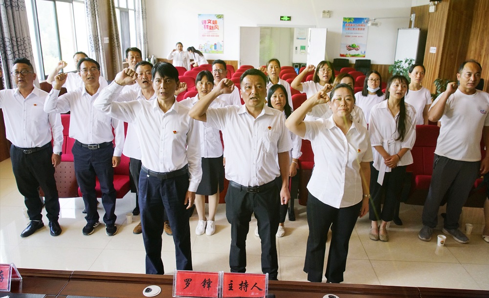 会议在庄严的国歌声中拉开帷幕,全体党员面对庄严的党旗重温了入党誓词。