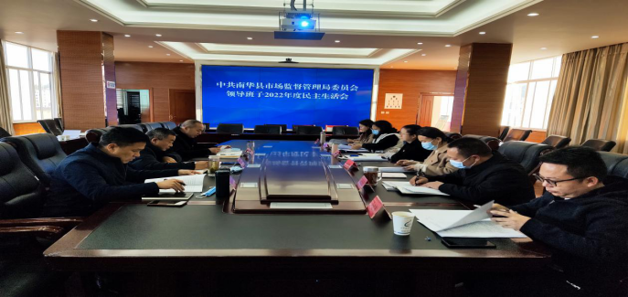 2月6日上午,南华县市场监督管理局党委领导班子召开2022年度民主生活会。县市场监督管理局党委书记、局长李昌同志主持会议,班子成员出席会议。县委第七指导组、县纪委县监委驻县政协办纪检监察组组长施应峰同志和驻县政管局纪检监察组组长周茂章同志到会指导。