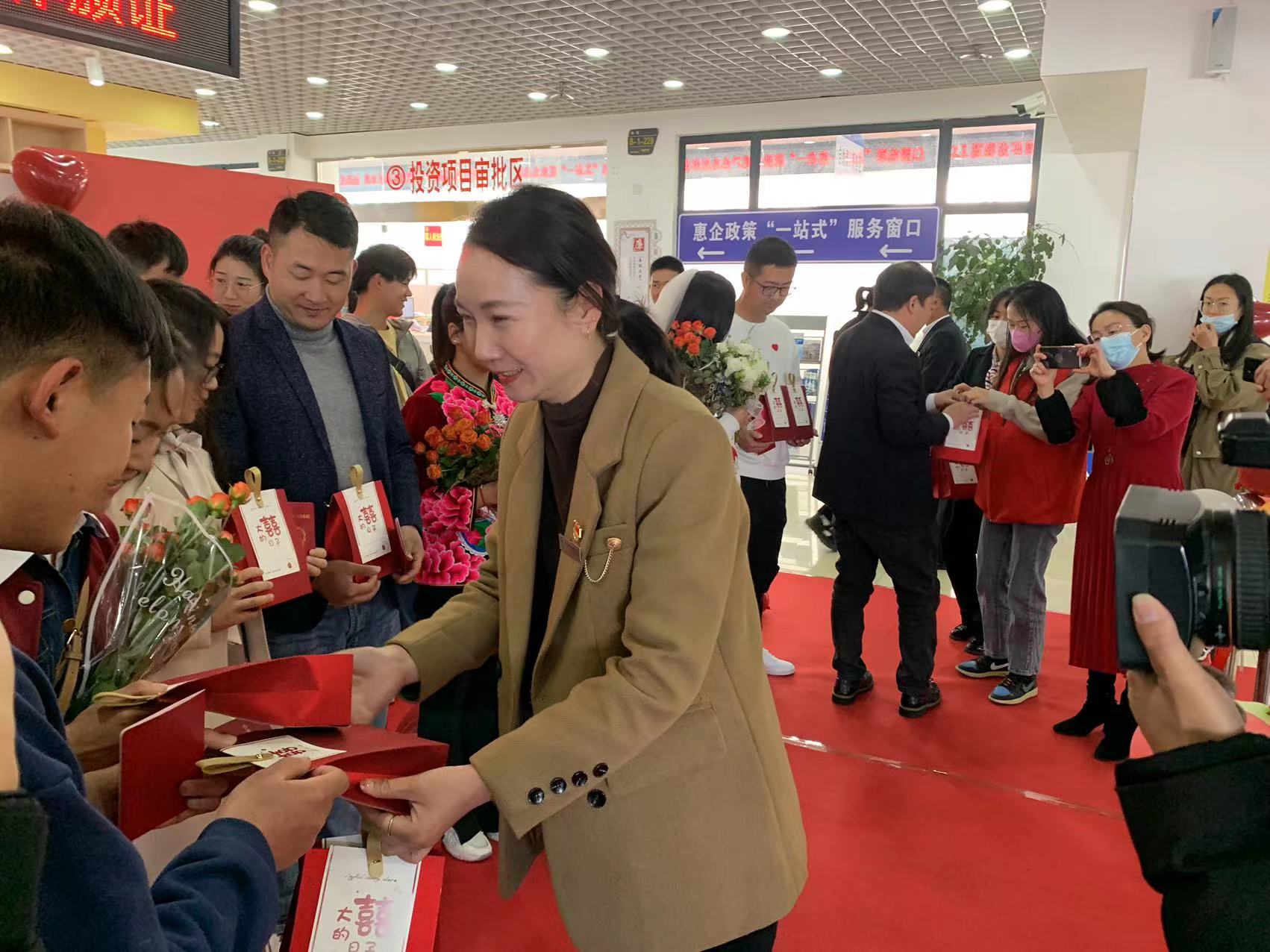 “以爱为名,以证为凭”,2月14日不仅是甜蜜的日子,同时也是结婚登记的高峰。为提升政务服务质量,增强办事群众获得感与幸福感,县政务服务中心提前谋划,线上预约,增加工作力量为新人约号审表,为前来办理结婚登记的新人们举行系列活动,传递县委、县政府对新人们的祝福。
