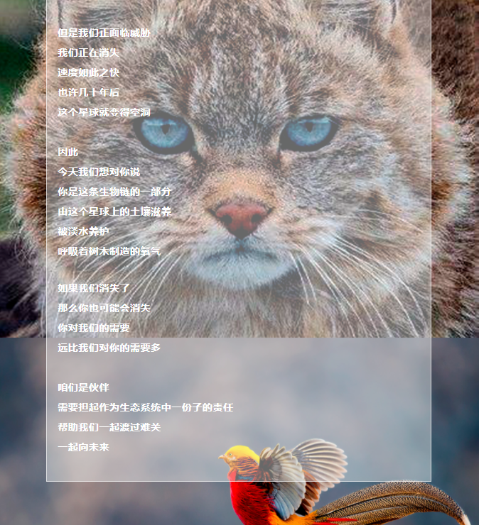 野生动植物是地球生命和自然生态体系的重要组成部分,其生存状况同人类可持续发展息息相关。作为这个星球与我们共生的“伙伴”,野生动植物的声音与诉求不可或缺,今天就让我们来听听它们的心声。