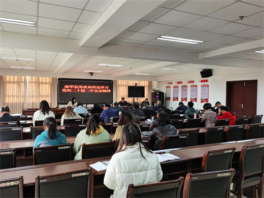 3月6日,县发改局机关和离退休党支部召开专题会议,传达学习党的二十届二中全会精神。局机关全体干部职工和局离退休党支部全体党员共40余人参加了学习。