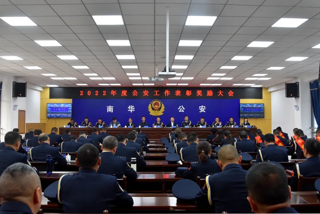 2023年3月7日,南华县公安局召开2023年全县公安工作会议。认真总结2022年全县公安工作,深入分析当前面临形势,全面安排部署2023年工作。并对在2022年度全县公安工作和队伍建设中涌现出来的先进集体和个人代表进行表彰。