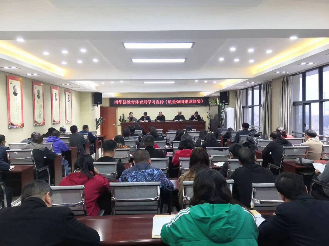 南华县教育体育局收到《南华县实施质量强县战略领导小组办公室关于深入学习宣传贯彻〈质量强国建设纲要〉的通知》后,高度重视,认真学习县质量强县办公室关于深入学习宣传贯彻《质量强国建设纲要》的通知精神,结合教育体育系统工作实际及时安排部署。