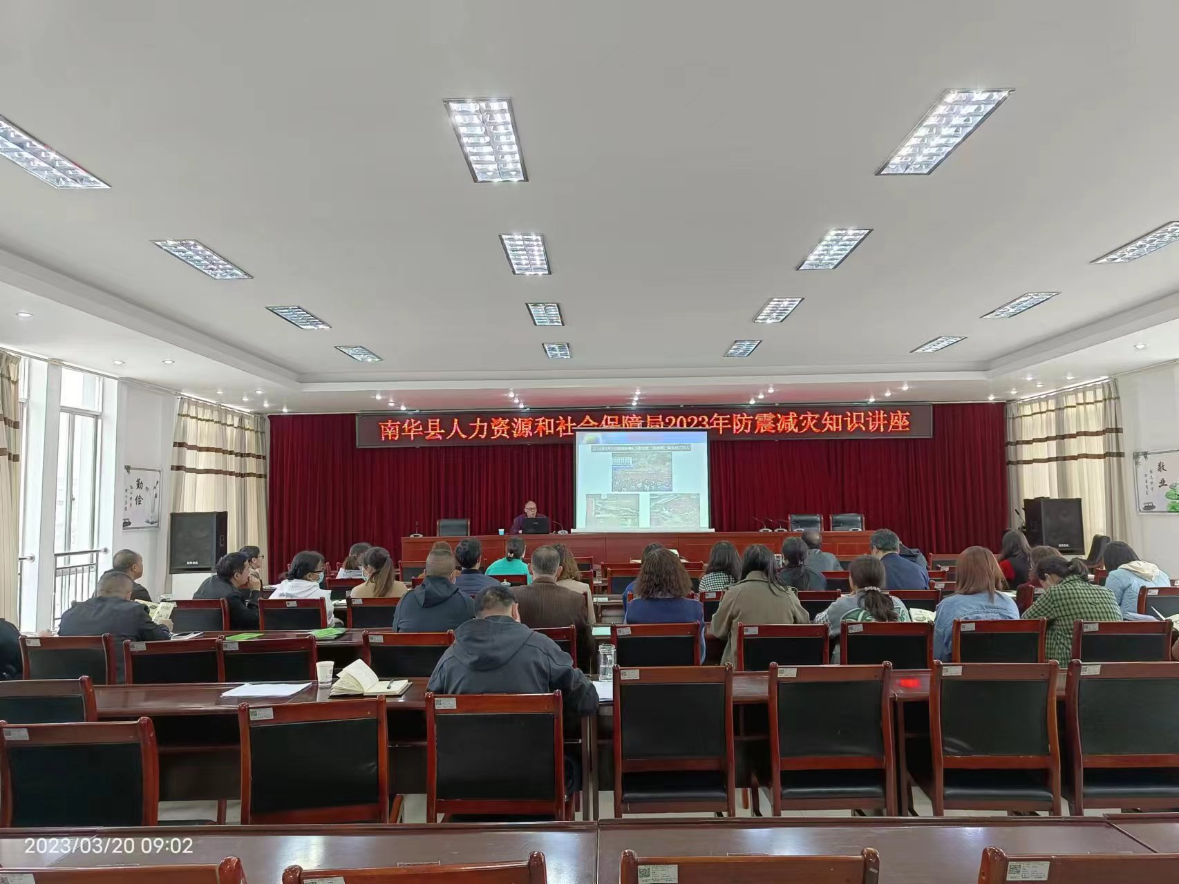 3月20日上午,南华县地震局深入县人力资源和社会保障局开展防震减灾科普知识讲座、指导地震疏散演练和发放防震减灾科普宣传资料。讲座由县地震局工程师纪开林主讲,县人力资源和社会保障局副局长阿发富主持,县人力资源和社会保障局全体干部职工约50人参加。