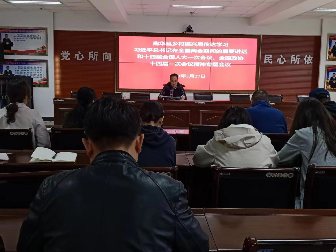 3月27日上午,县乡村振兴局召开全体干部职工会议传达学习全国两会精神。县乡村振兴局党组书记吕忠洋主持会议并讲话。