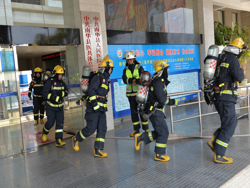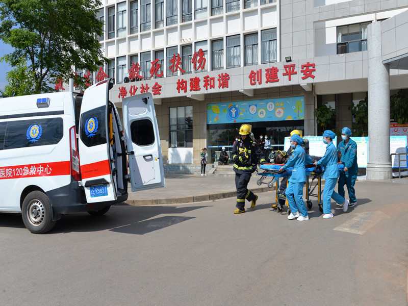 3月31日,南华县消防救援大队联合县医共体总医院开展消防应急救援实战演练。