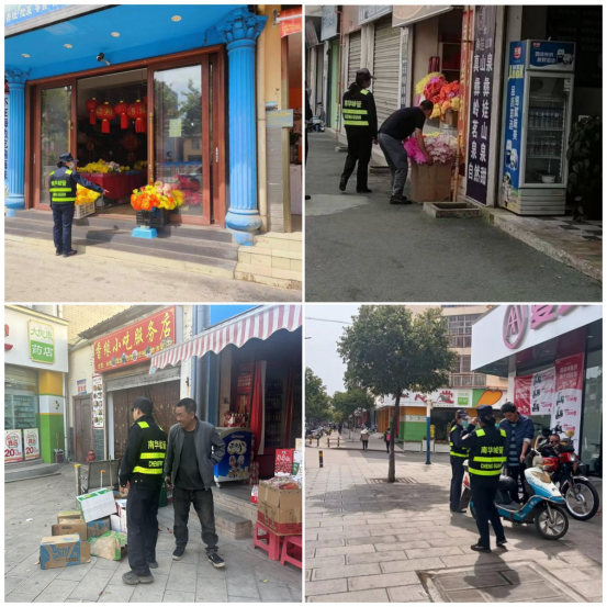 城管执法大队持续加强对易发生占道经营乱象的地段进行整治,加强交通高峰期管理,持续加大对各种市容乱象的治理力度,重点关注殡葬用品门店倚门出摊、占道经营、占道堆放等问题,重点路段定人定岗,及时查处各类违法违规行为,特别是强化了对农贸市场周边流动摊点的巡查管理力度,强化督导,严格落实错时工作法,保障城市管理工作不脱节;坚持实地巡查与应急值守相结合,在做好市容环境秩序保障的同时加强各类隐患排查,把露天焚烧、燃放炮竹等具有消防安全隐患的违法行为作为重点执法检查事项,消除消防安全隐患,保障广大市民清明节期间祭扫出行安全、有序、舒心。
