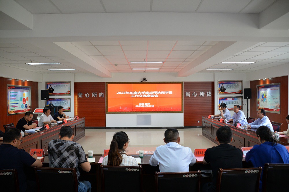 4月20日下午,在县公务中心召开了座谈会。会上,县委书记马特在致辞中表达了对东南大学10年来真心真意、务实、全心全意的帮扶表示感谢,10年来,在人才培养、产业项目建设、教育医疗帮扶等方面投入各类帮扶资金5800余万元、消费帮扶资金2650余万元。希望东南大学在高端人才资源、科技成果、教育帮扶和彝绣产业发展等方面继续给予更多支持。期待适时在两地举办“东大周”“南华周”,届时期侯更多批次的师生、校友到现场“打卡”,拉动全国对南华“点击量”,以更多方式创新带动南华发展。
