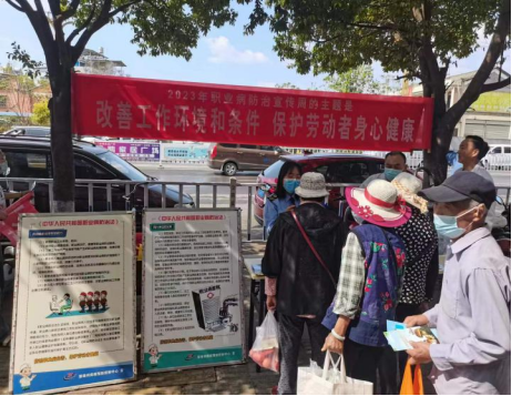 2023年4月25日至5月1日是第21个《中华人民共和国职业病防治法》宣传周,为认真贯彻党中央、国务院关于职业病防治工作的决策部署,深入宣传贯彻《中华人民共和国职业病防治法》,进一步推动落实职业病防治工作的责任,切实保障广大劳动者职业健康权益,提高劳动者的职业健康意识。4月25日,南华县卫生健康综合监督执法局联合县疾病预防控制中心紧紧围绕“改善工作环境和条件,保护劳动者身心健康”这一宣传主题,通过媒体传播、现场宣传等多种形式进行广泛宣传,进一步落实用人单位主体责任,切实保障劳动者的职业健康权益。