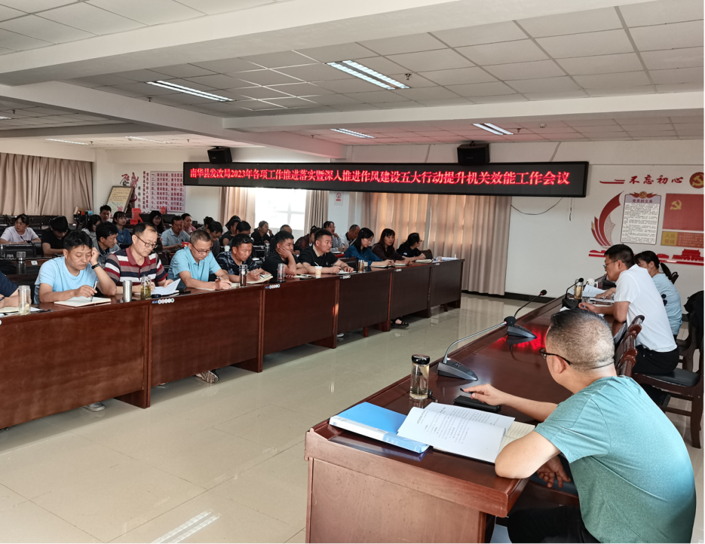 为了聚焦全面完成年度目标任务,对2022年度各项工作进行深入分析,对推进作风革命提升机关效能工作再部署再督促再落实。5月9日,县发改局召开2023年各项工作推进落实暨深入推进作风建设“五大行动”提升机关效能工作会议。局机关全体干部职工、县粮食储备有限公司全体职工、局离退休党支部部分党员参加了会议。