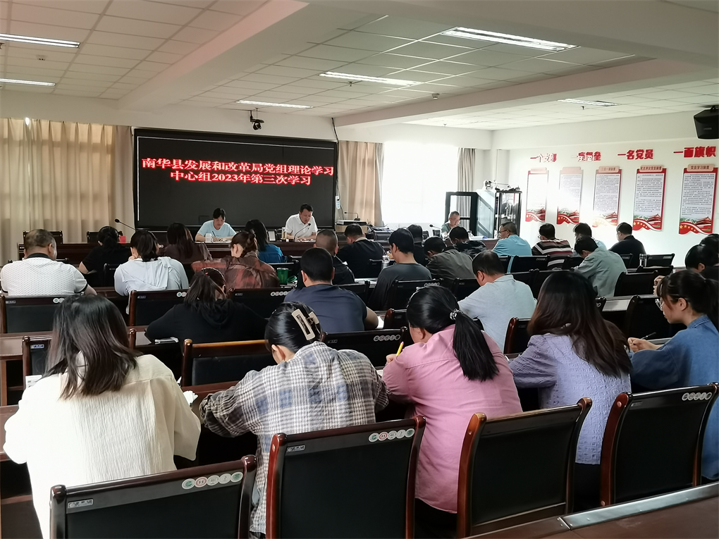 5月9日,南华县发改局党组理论学习中心组举行2023年第三次集中学习,深入学习领会习近平总书记关于全面从严治党、党风廉政建设及廉洁文化建设的重要论述。局机关全体干部职工、县粮食储备有限公司全体职工、局离退休党支部部分党员参加了会议。