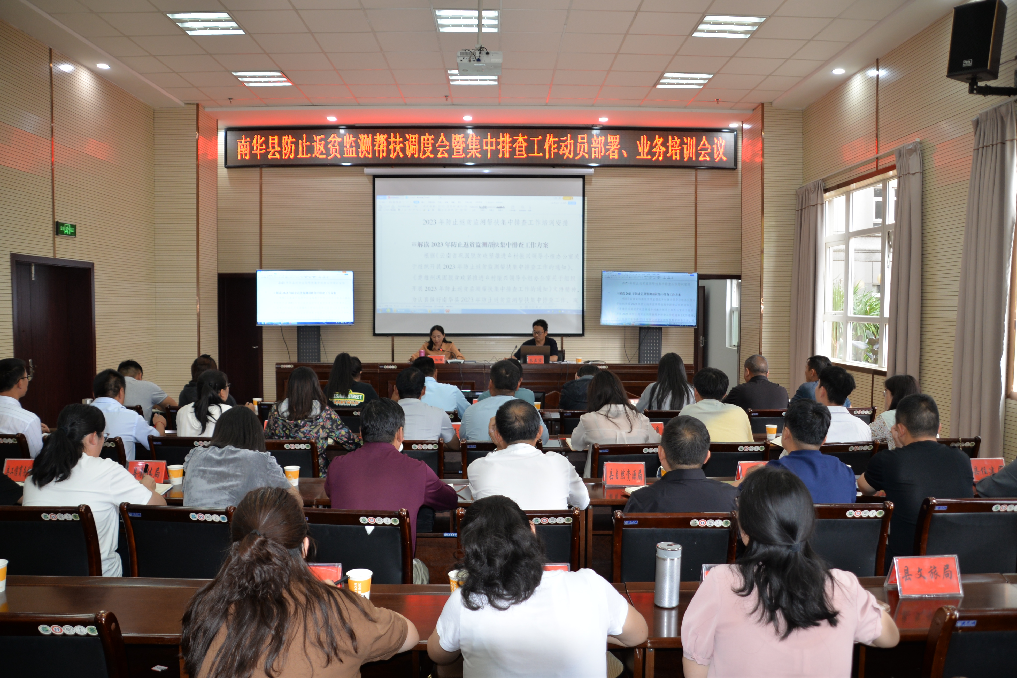 5月12日下午,南华县巩固脱贫攻坚推进乡村振兴领导小组办公室组织召开会议,对2023年防止返贫监测帮扶工作进行调度,安排集中排查工作并开展相关业务培训,会议以视频形式召开,县公务中心一楼会议室设主会场,各乡镇设分会场,10个乡镇和18个县级有关行业部门参加会议。