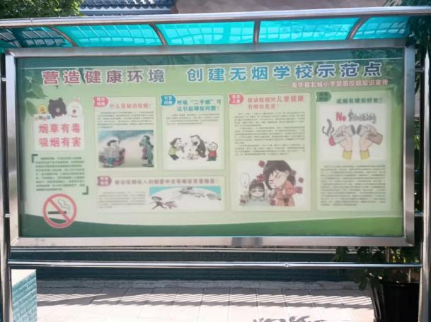 作为无烟学校示范点建设北城小学,充分发挥在控烟工作中的示范引领作用,持续加强控烟工作,切实营造无烟、健康、文明的教学环境。利用世界无烟日、儿童节、教师节、新生入学等重要时间节点,通过各种活动、讲座、宣传栏、电子屏等方式,对控烟知识进行广泛宣传,形成广大师生以及家长积极支持控烟的良好氛围。学校将吸烟、二手烟、三手烟及电子烟危害等控烟相关知识纳入学生健康教育课程,通过课堂教学、班会、党团活动、知识竞赛、板报等多种形式,创新开展青少年和教师乐于接受的控烟知识宣传和普及活动,促进师生养成了健康无烟生活方式,共同维护了无烟校园环境。加强家校合作,利用家长会、家长委员会、积极宣传吸烟有害健康的科学知识和控烟有关规定。以小手拉大手活动为依托,通过印发《致家长的一封信》、向家长宣传控烟知识等方式,积极引导学生家长控烟、戒烟。五是不断总结经验,完善制度,创新措施,积极探索长效机制,持续巩固提升无烟学校建设成果,促进了师生身心健康。
