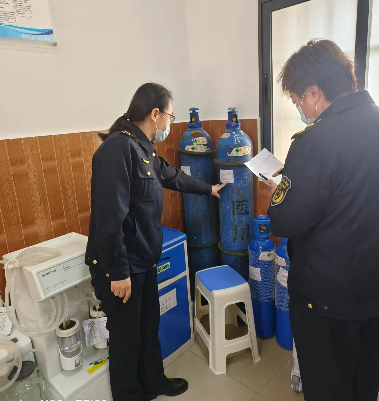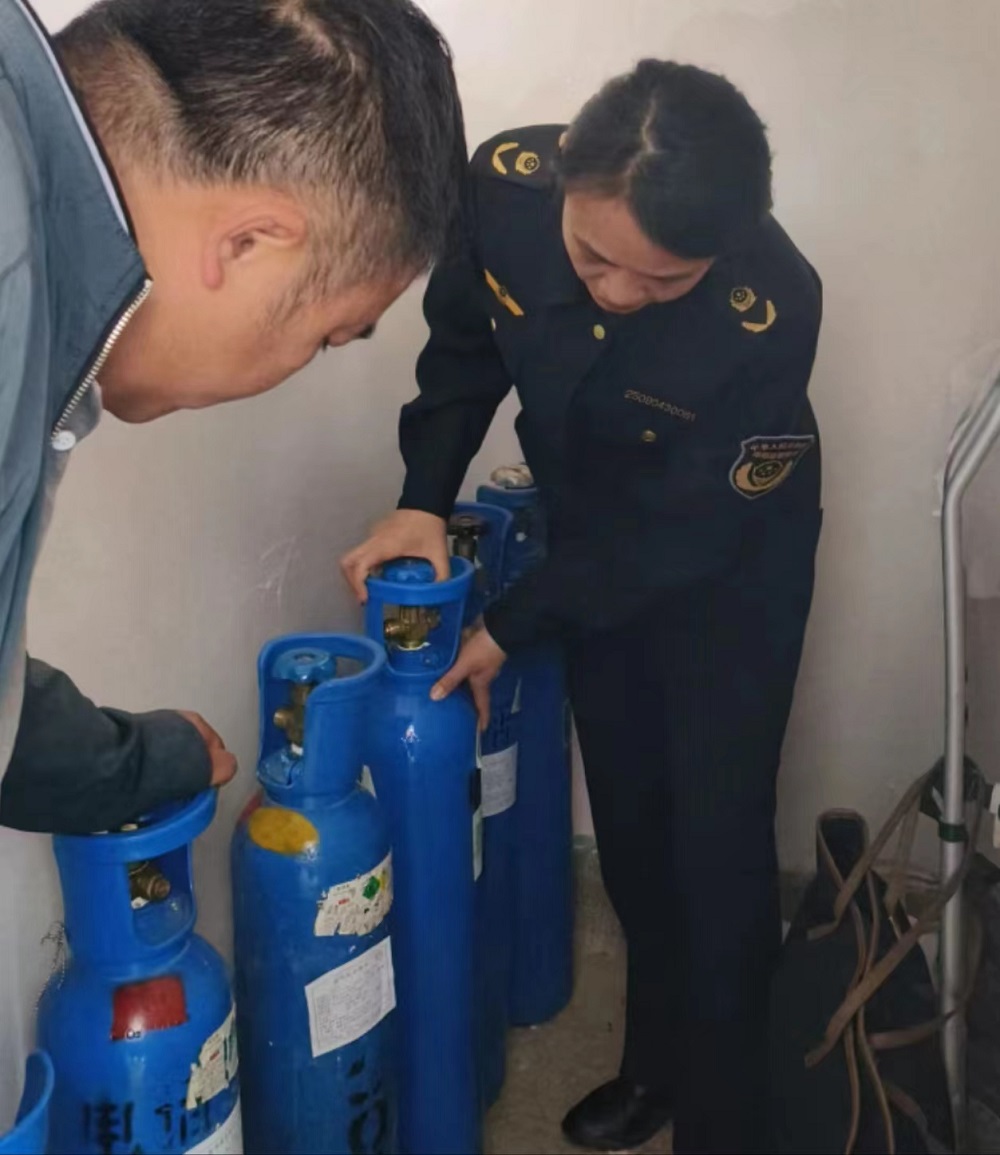 针对夏季持续高温,医用氧气安全风险增加的形势,县市场监管局开展医用氧气大起底大排查大整治专项检查,及时消除安全隐患。重点从四个方面开展检查:一是查看供货方资质留存情况检查是否存在非法渠道购进;二是查看使用单位岗位职责和管理制度建立执行情况检查主体责任是否落实;三是查看医用氧气标签标示检查产品是否合格;四是查看储存场所检查是否存在易燃易爆安全隐患。