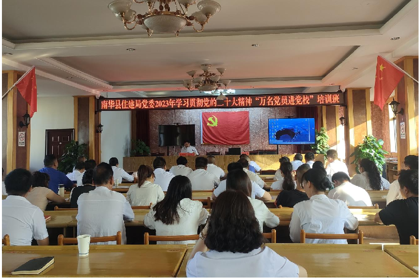 为深入学习贯彻习近平新时代中国特色社会主义思想、党的二十大精神和习近平总书记考察云南重要讲话精神,引导广大党员锤炼党性修养,筑牢党性根基,践行使命担当,2023年5月24日-26日,南华县住建局举办了为期三天的学习贯彻党的二十大精神“万名党员进党校”培训班。全局党员领导干部、在职党员、两新组织党员等77名党员参加培训班。