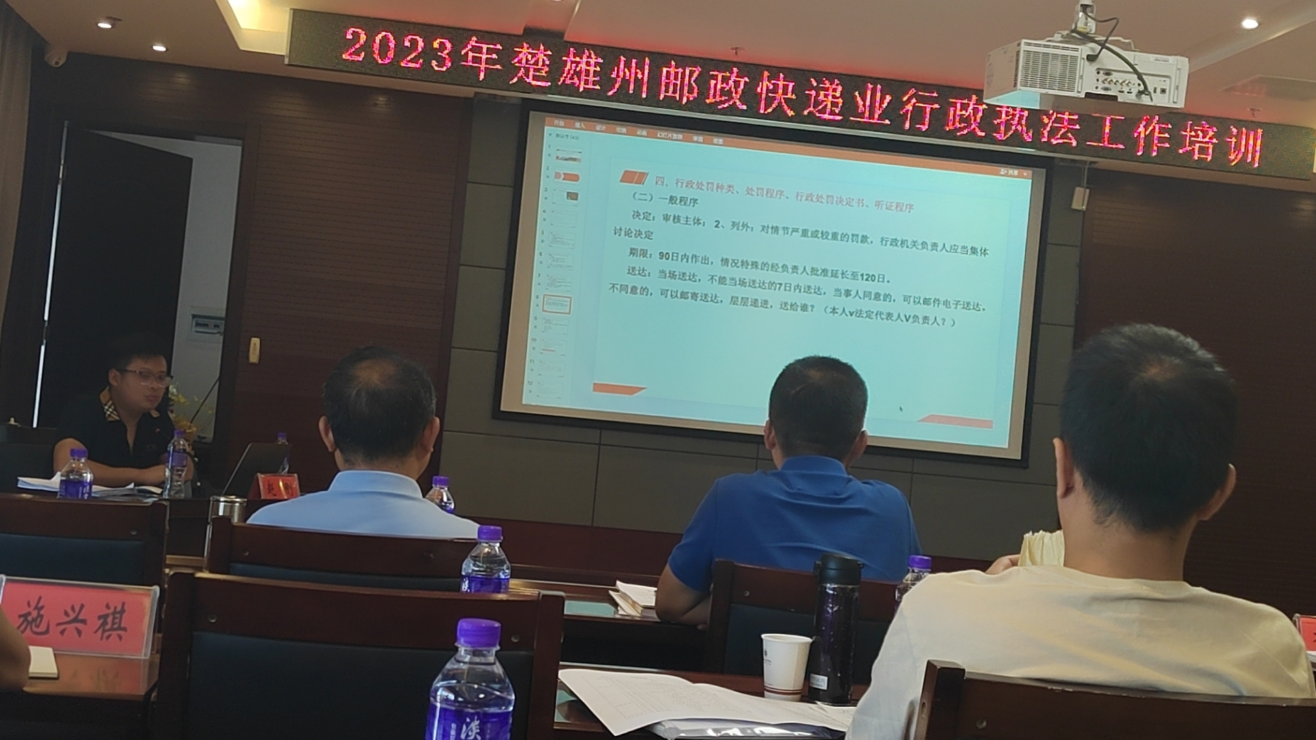 培训围绕邮政普遍服务监管、邮政快递业安全生产、邮政快递业市场监管、行政许可审批、平安建设、禁毒工作、邮政快递业绿色环保、法律法规知识等方面进行讲解和开展了现场讨论。通过参训人员的认真学习讨论,厘清了今后一段时期的工作思路:一是继续保持做好市场监管工作的信心,主动克服工作中遇到的困难,进一步提高思想认识,齐心协力做好邮政市场监管工作;二是进一步提升执法水平,切实提高法治意识,严格、规范、公正、文明执法,不断提高行政执法能力和水平;三是进一步抓好安全管理,抓实抓牢安全生产管理,督促企业加强消防、用电、运输车辆管理和人员安全教育,组织开展专项执法检查,重点打击枪爆违法犯罪,加强反恐怖主义防范工作,确保行业运行安全稳定。