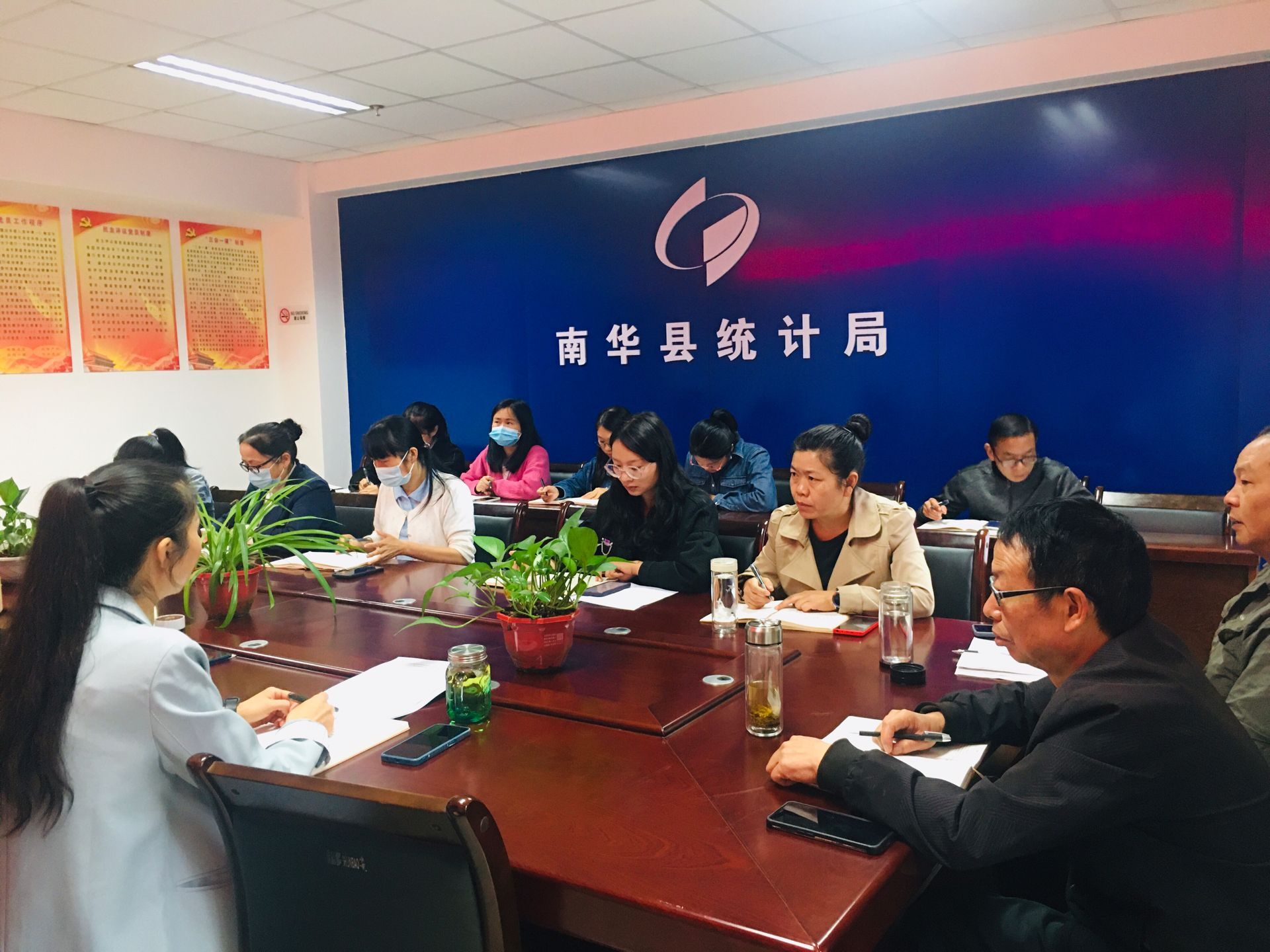6月15日上午,南华县统计局召开干部职工会议,传达学习近期会议精神。会议由局党组书记、局长戴必新主持,全体干部职工参加会议。
