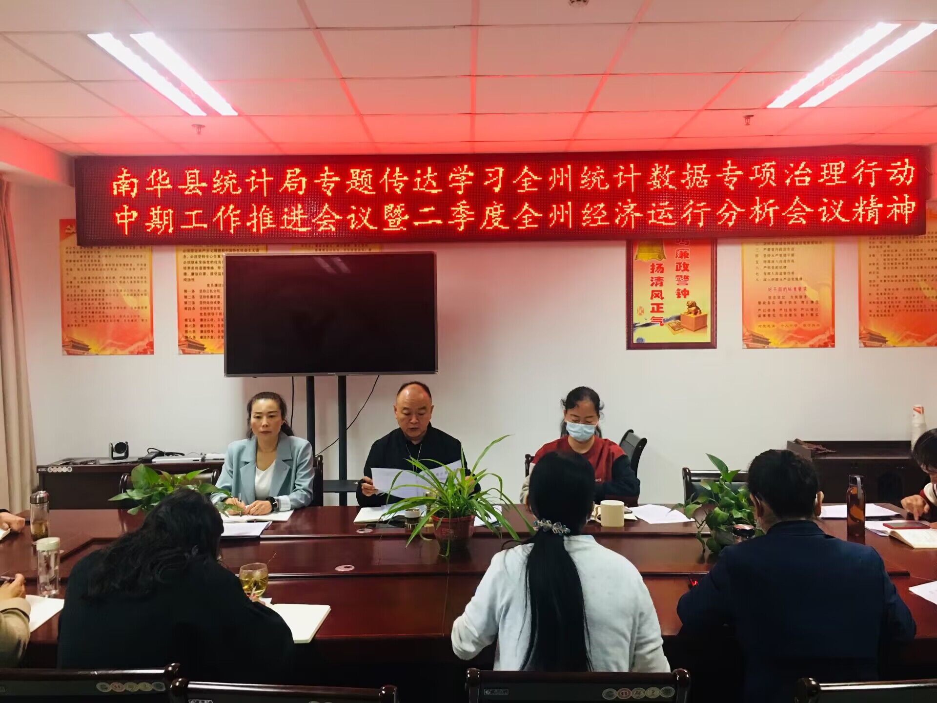 会上,传达学习了州统计局统计数据专项治理行动中期工作推进会议精神和全州二季度经济运行分析会议精神。以及传达了何晓荣书记对统计数据专项治理行动的下步工作安排部署要求和王清华局长对保障经济稳增长的讲话要求。