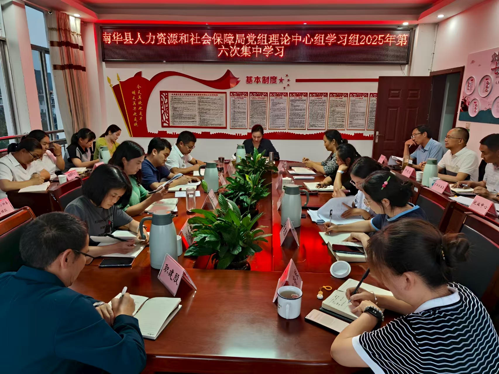 2025年7月28日,南华县人力资源和社会保障局党组召开2025年党组理论学习中心组第六次集中学习会议。会议以集中学习和交流研讨形式召开,部分班子成员作了交流发言,县人社局班子成员、股室长、中心主任共计20余人参加了会议。