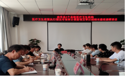 为加强审计机关党风廉政建设,增强一线审计人员廉政风险防控意识和纪律作风意识,确保全面从严治党治审。6月25日下午,南华县4个县级医疗卫生机构医疗卫生政策执行情况专项审计调查项目审计组组长对审计组全体人员开展了审前廉政提醒谈话。