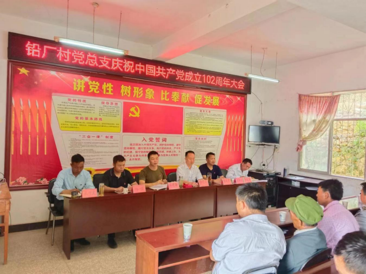 7月1日,县乡村振兴局党组书记带领县乡村振兴局党组成员,到雨露乡铅厂村委会为全体党员、村小组干部讲授专题党课。