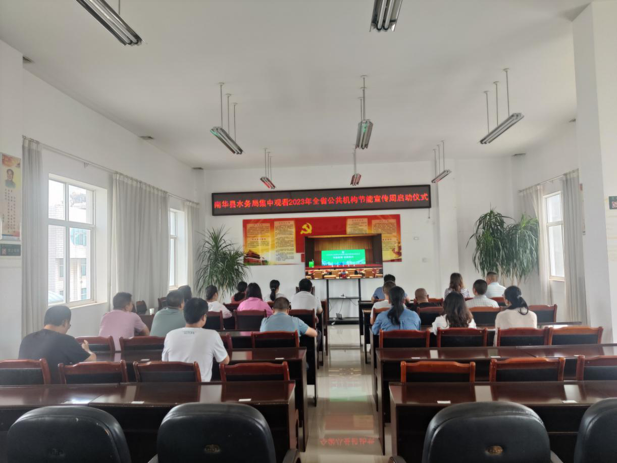 在全国节能宣传周和全国低碳日到来之际,7月11日上午,南华县水务局组织干部职工38人集中观看2023年全省公共机构节能宣传周启动仪式。