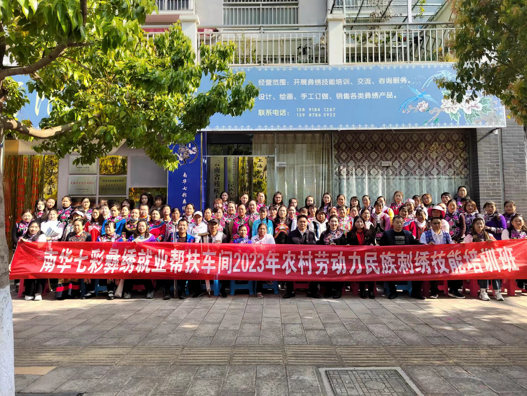 强化技能培训,提升劳动者就业能力。2018年9月,在各级人社部门的帮助下,南华七彩彝绣文化传播有限责任公司成立了“楚雄技师学院培训中心南华彝绣培训基地”,2022年10月,南华七彩彝绣文化传播有限公司被认定为“企业职工培训中心”。2019年来,在全县彝绣行业及10个乡镇组织企业职工及农村劳动力开展民族刺绣及缝纫工技能培训46期2457人,培训后取得培训合格证549人、取得专项能力证书1046人,取得职业技能等级证862人,其中中级工40人、初级工822人。通过开展技能培训,南华县“绣娘”的技能水平得到大幅提高,有云南省手绣制作工高级教师15人,取得国家“手绣制作工”考评员证4人,在楚雄州100名高级绣娘中南华县占47名。