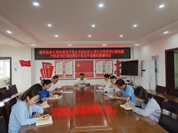 7月11日,南华县审计局开展五顶山乡党政主要领导履行经济责任情况等5个审计项目审前廉政提醒谈话。