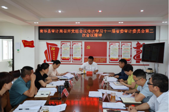 7月10日,南华县审计局召开党组会议及干部职工会议,传达学习十一届省委审计委员会第二次会议精神,并结合南华审计工作实际对贯彻落实十一届省委审计委员会第二次会议精神作了具体安排。