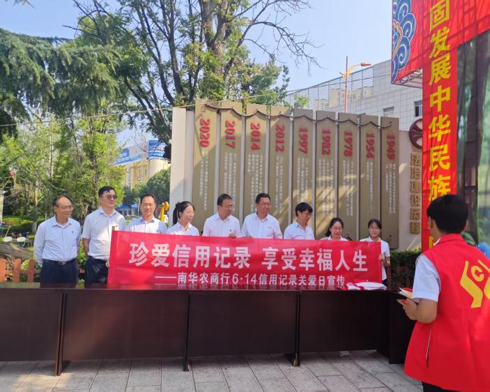 今年6月是第18个全国“6·14信用记录关爱日暨社会信用体系建设宣传月”,为提升社会公众的信用意识和维权能力,引导企业诚信经营,营造诚实守信的良好社会氛围,持续优化营商环境。南华县发展和改革局组织社会信用体系建设成员单位、金融机构在龙泉广场开展“守护信用共赢未来”主题活动。