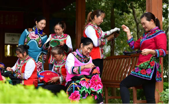 中华优秀传统文化是中华民族的精神命脉,也是我们在世界文化激荡中站稳脚跟的坚实根基。在彝绣的传承和发展过程中,正是党的富民政策,让南华彝绣实现“绣品变商品、绣片变名片、秀场变市场”三大转变,走出“特色化、高端化、产业化、国际化”蜕变之路,彝绣逐渐成为“野生菌王国”文化新名片。