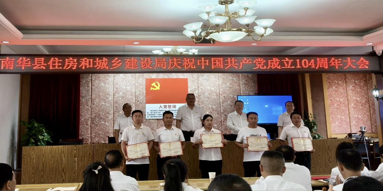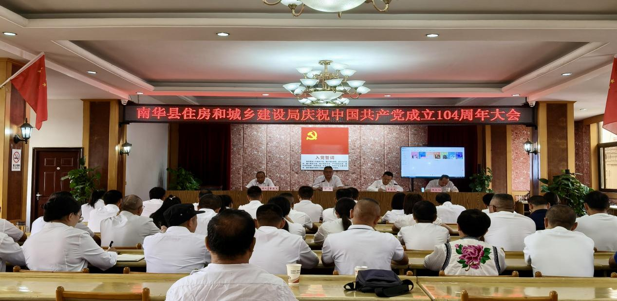 为热烈庆祝中国共产党成立104周年,结合深入贯彻中央八项规定精神学习教育,进一步激发党组织战斗力与凝聚力,增强党员干部的责任感与使命感,南华县住房和城乡建设局于2025年6月30日上午召开庆祝大会,并结合工作实际精心组织开展“七一”建党节系列活动。