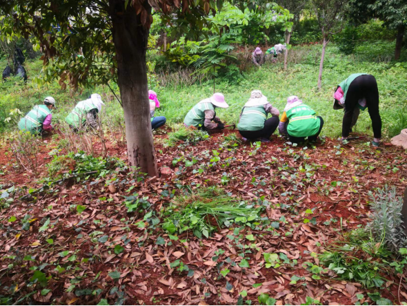 三是加强清除杂草工作。绿化养护工作人员及时对公园广场及道路绿化带内的杂草枯枝等进行集中清理,安排专人负责,在除草时对土壤进行翻耕,增加土壤透气性,益于排灌。