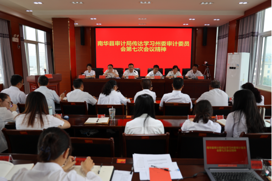 会议要求:一是认真学习,深刻领会会议精神。全体干部职工要认真学习领会州委审计委员会第七次会议精神,提高思想认识,领会精神实质,把握具体要求,振奋精神、鼓舞干劲,以高质量审计监督护航南华高质量跨越式发展。二是结合实际,深入贯彻落实会议精神。要提高政治站位,结合学习贯彻二十届中央审计委员会第一次会议精神和十一届省委审计委员会第二次会议精神,认真贯彻落实好州委审计委员会第七次会议工作部署,扎实开展好审计队伍教育整顿,以自我革命铸就对党绝对忠诚,更好发挥审计在推进党的自我革命中的独特作用。三是狠抓落实,以高质量审计监督护航南华高质量跨越式发展。要进一步扛牢审计担负的重要使命,立足经济监督定位,聚焦主责主业,高质量推进年度审计项目组织实施,进一步提升审计监督质效。