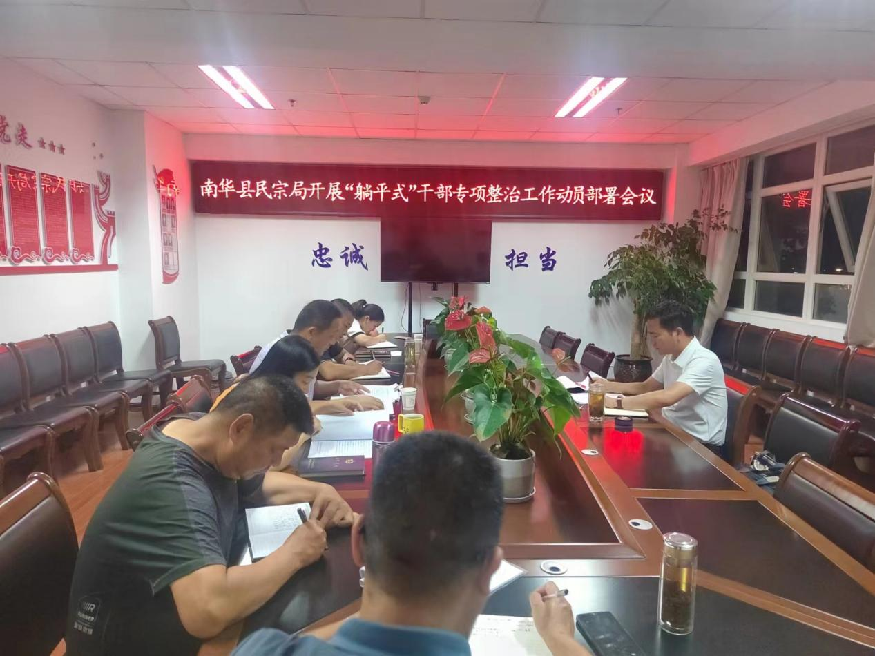 为切实整治心态“佛系”、状态“躺平”、工作“摆烂”的干部,解决好干部队伍中存在的不愿担当、不敢担当、不善担当等问题。8月3日晚上,县民宗局召开“躺平式”干部专项整治工作动员部署会议,全体干部职工参加会议。