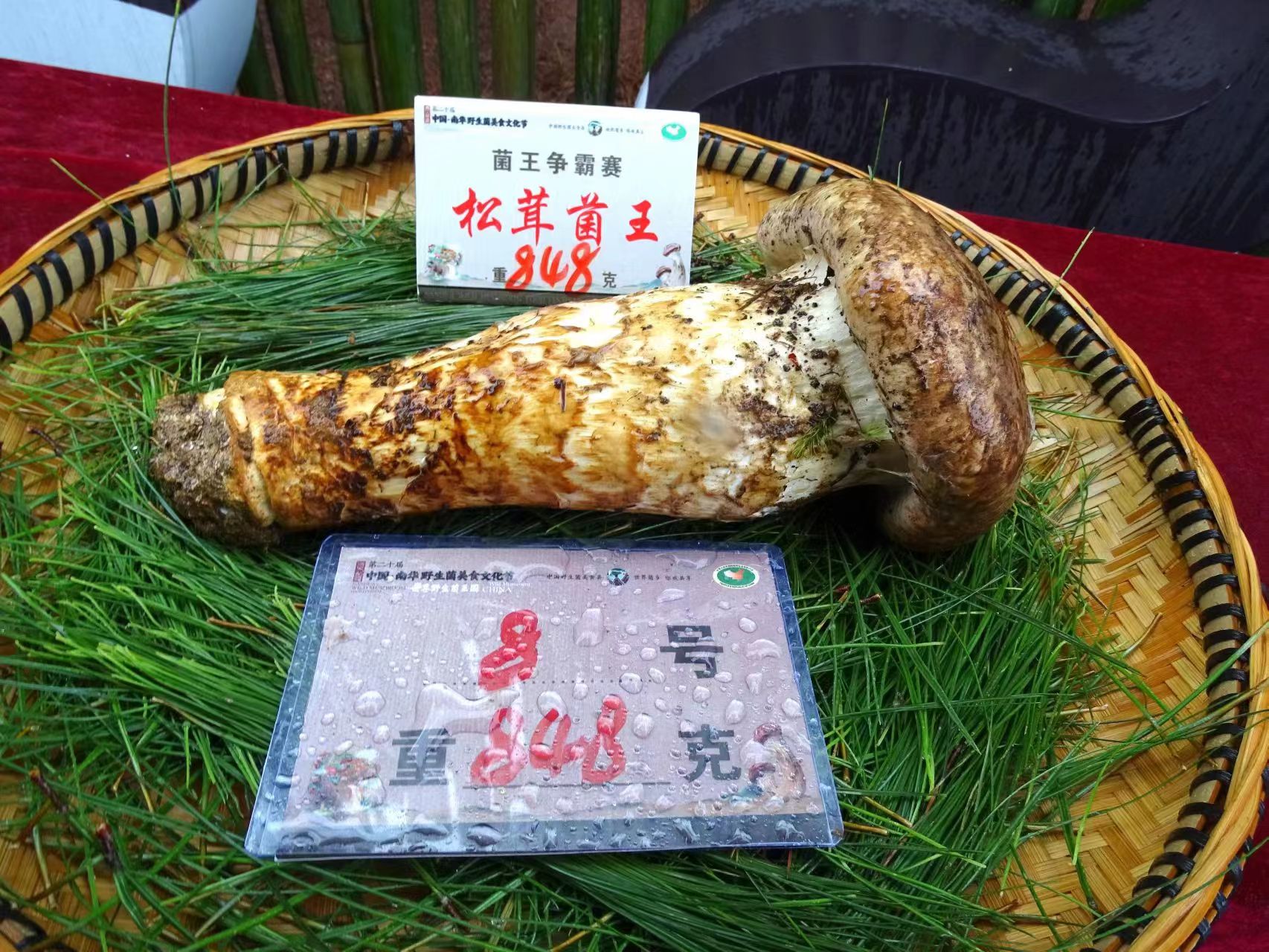 8月3日下午,遇见楚雄—中国·南华第二十届野生菌美食文化节“菌王争霸赛”在“松茸之乡”美称的五街镇咪黑们村委会洒利路成功举办。此次“菌王争霸”中,经评委初评、参赛选手宣传、称重等激烈角逐,1朵重量达848克的松茸称霸菌王,荣登宝座。在现场,经多轮竞争拍,以68000元高价成交。