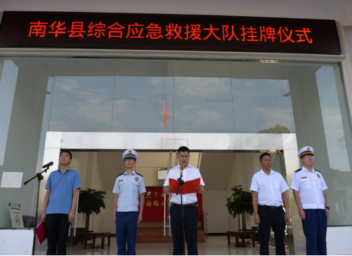 为加快基层应急和综合治理力量建设,提升全县防范化解重大安全风险、应对处置各类灾害事故的能力水平,推进应急管理体系和能力现代化,8月16日,南华县综合应急救援大队在县消防救援大队挂牌成立。县委常委、县人民政府常务副县长毛焕朝、县应急管理局局长李宏洲为南华县综合应急救援大队揭牌。
