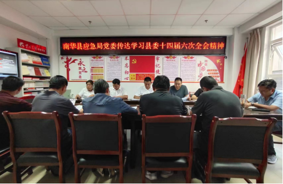 8月15日,县应急管理局党委召开干部职工大会,传达学习县委十四届六次全会精神,全体党员、干部职工参加会议。