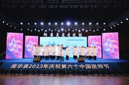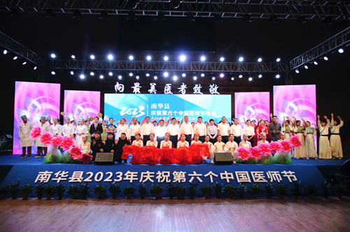 金秋八月,野菌飘香。8月18日晚,由中共南华县委南华县人民政府主办,县卫健局、县医疗保障局、县红十字会承办的2023年庆祝第六个中国医师节文艺晚会在县体育馆成功举办。县委副书记、县长陈如军,县人大常委会主任何文育,县政协主席殷卫华,县委常委、县人民政府常务副县长毛焕朝,县人大常委会副主任马治国,县人大常委会副主任朱必兰,县人民政府副县长张舫瑞,县政协副主席翁云龙出席晚会。县级各部门(单位)主要领导,县卫生健康局、县医疗保障局、县红十字会全体干部职工,全县各卫生健康单位党政主要领导,各医疗卫生单位代表,受表扬的最美医生,优秀个人和优秀集体代表600余人参加晚会。