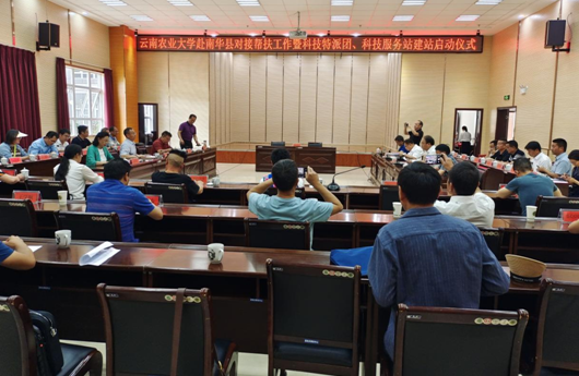 6月17日上午,云南农业大学校长、云南省高原特色农业产业研究院院长李永和率队赴南华举行云南省南华县食用菌产业科技特派团、“农民院士”科技服务站启动仪式。启动仪式在公务中心一楼中型会议室举行,会议由南华县人民政府副县长李春剑同志主持,县委书记马特同志就南华县“一县一业”示范创建工作推进情况、食用菌产业发展现状和下步食用菌产业发展规划进行汇报,云南农业大学校长、云南省高原特色农业产业研究院院长李永和同志就向南华县派遣食用菌产业科技特派团、建立“农民院士”科技服务站的目的和技术合作意向作了具体阐述。