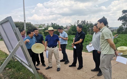 为落细落实大豆玉米带状复合种植技术,6月26日,全国农技中心王积军总农艺师,带领全国农业技术推广服务中心病虫害防治处刘慧副处长,农业农村部带状复合种植专家组成员、中国农科院作物所吴存祥研究员,农业农村部带状复合种植专家组成员、北京农林科学院赵久然研究员,农业农村部种植管理司粮食处、全国农技中心科技标准体系处和粮食处、北京市农林科学院玉米所等相关人员组成的调研组,在省州农业农村部门的陪同下,深入南华调研指导大豆玉米带状复合种植技术工作。