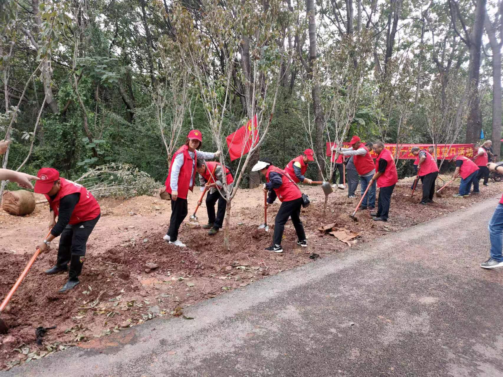 活动现场,党员同志们热情高涨、干劲十足,扶苗、填坑、培土、浇水有序进行,充分展示了党员干部朝气蓬勃的精神风貌和团结协作的合作精神。经过一上午热火朝天的劳动,鹦鹉山公园增添了一抹靓丽的新绿。
