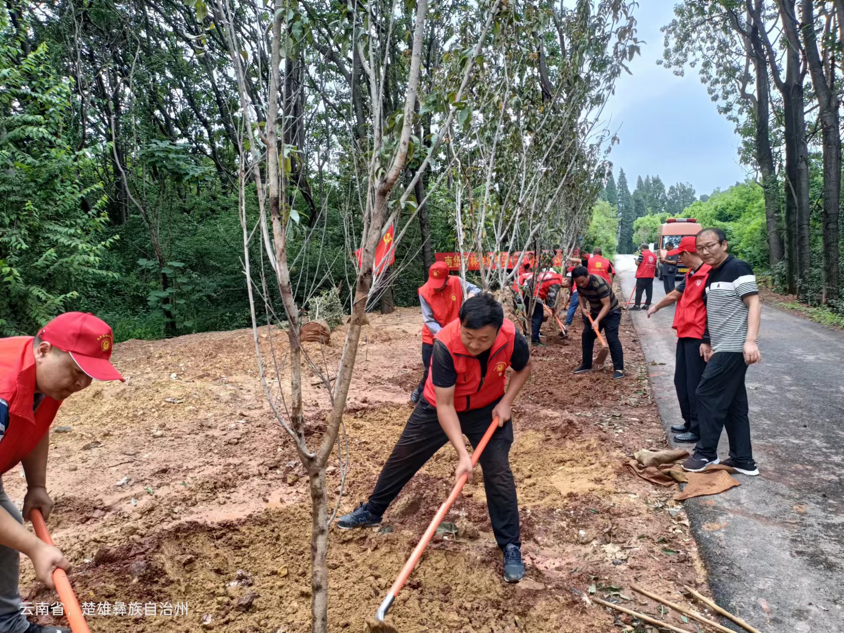 2023年8月22日,南华县林业和草原局组织机关干部职工及施工企业员工共100余人,在鹦鹉山公园防火通道开展2023年“互联网+全民义务植树”项目启动仪式。在现场,大家干劲十足,分工协作,抡镐挥锹、扶苗填土,各个环节衔接有序,配合默契,以辛劳和汗水种下一片新绿,开启了2023年“互联网+全民义务植树”活动新篇章。